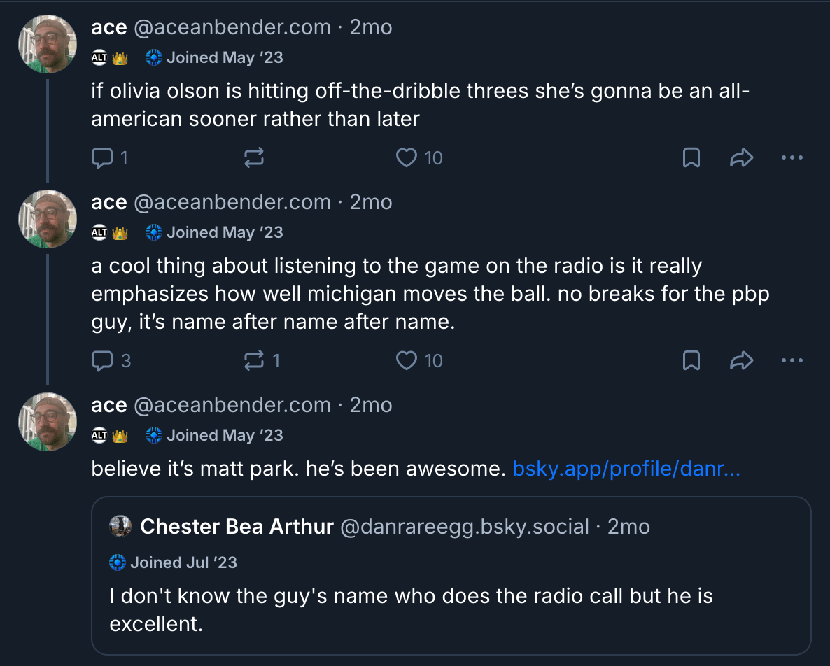 Listening to the games and posting about them on Bluesky kept me engaged with the outside world. Staying engaged with the outside world eventually got me out. A friend on Bluesky who I’ve yet to meet in real life — someone I know through the UMich community, naturally — connected me to a couple in Ypsilanti renting a room.